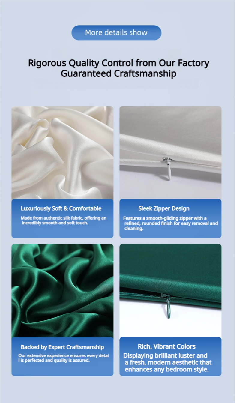 From selecting premium mulberry silk to our precise stitching techniques, every detail undergoes strict quality control. The easy-care fabric is machine washable, ensuring long-lasting silky texture and vibrant color that stays new-looking wash after wash.