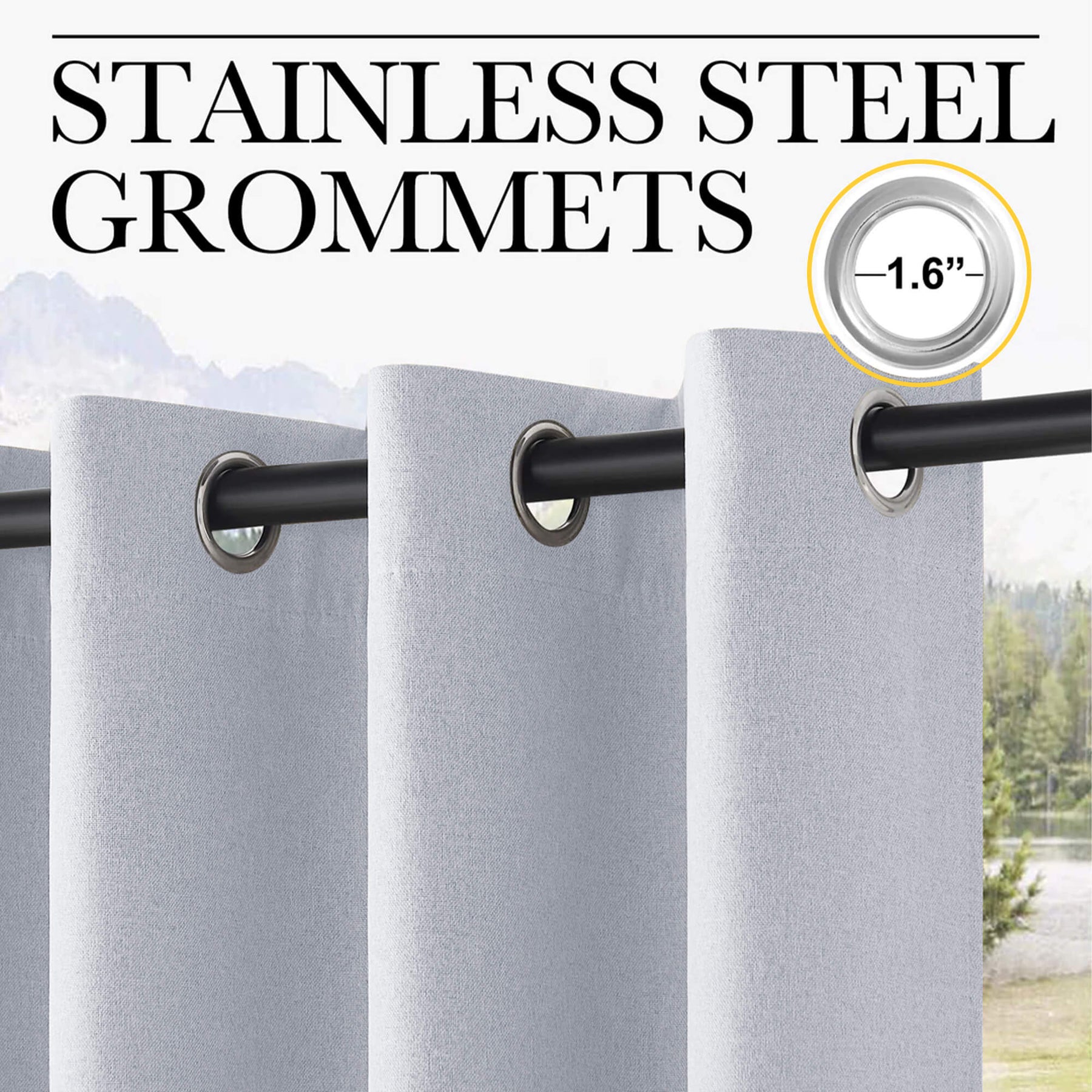 Grommets make the curtain weighted and fixed enough to avoid blowing and flapping, so that provides you with much privacy as well as protects you from sun and rain.