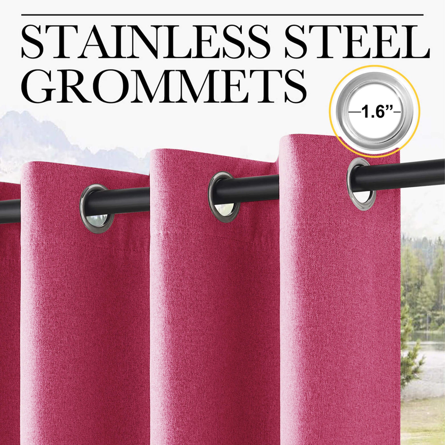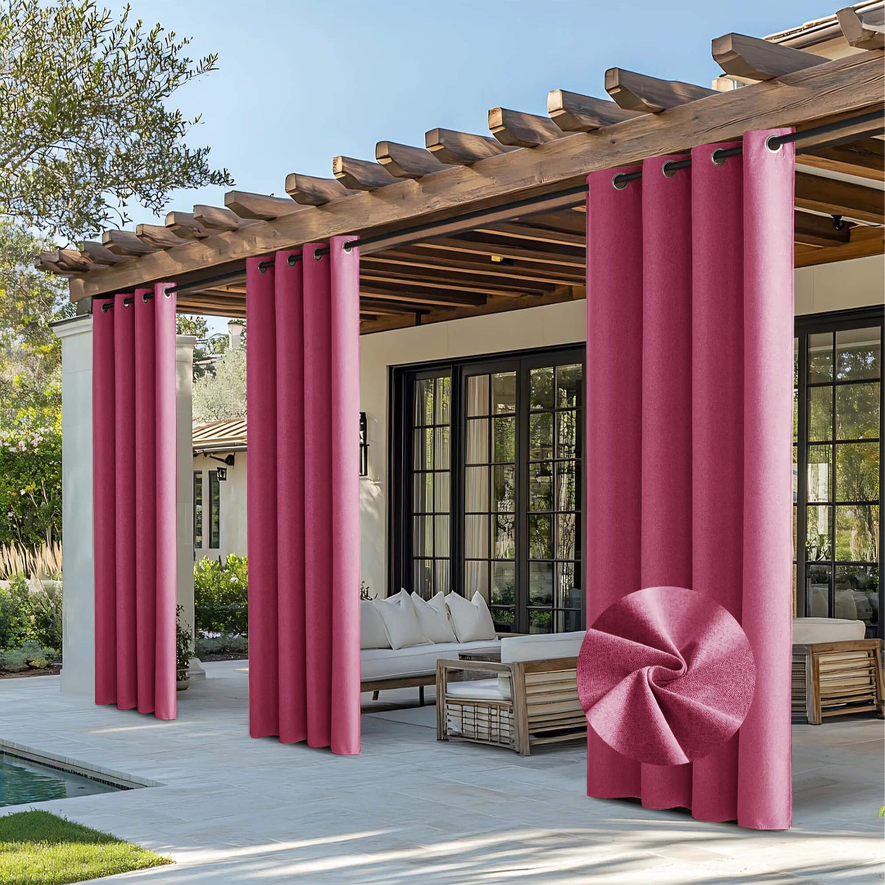 Outdoor 100% Blackout Waterproof Double-Sided High-Quality Combed Cotton Curtains, Burgundy