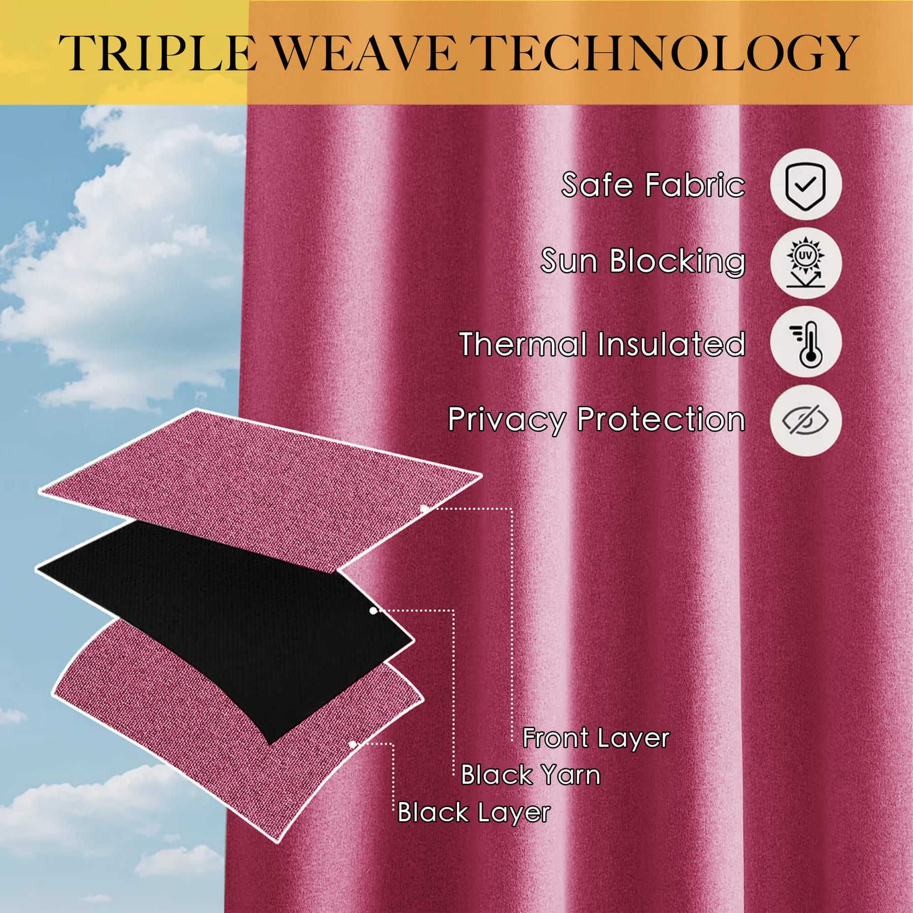 The curtain adopts triple weave and special waterproof material not only can block out sunlight but also withstand high wind and rain well.