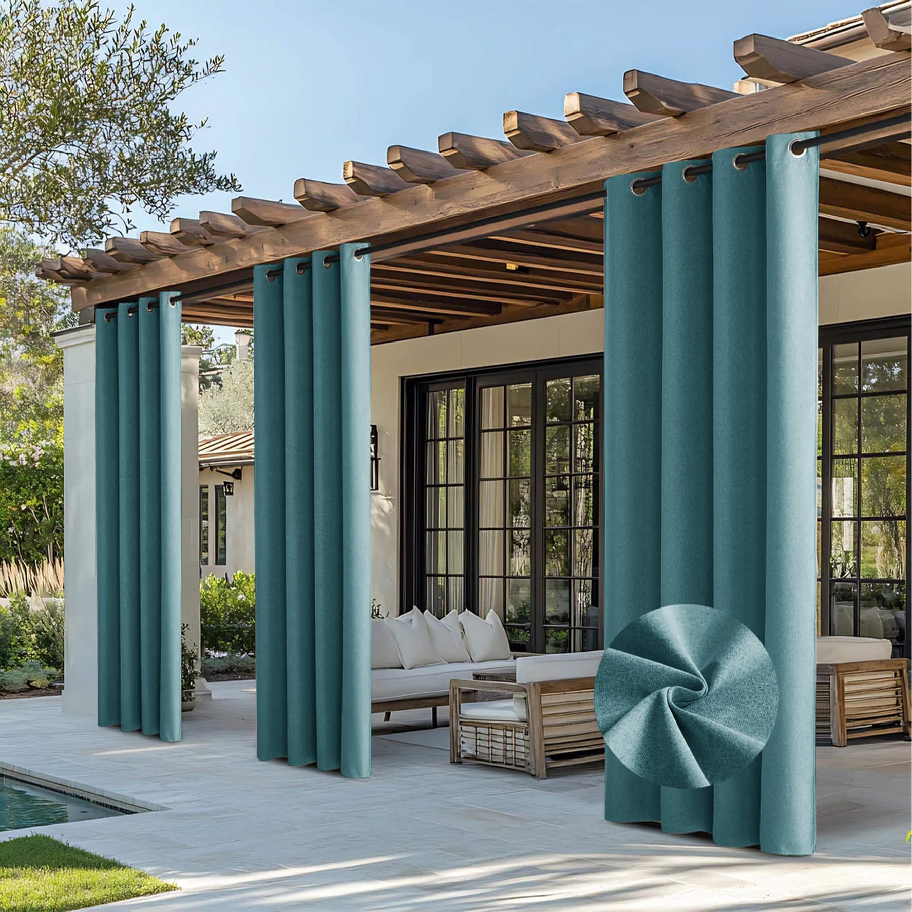 Grommets make the curtain weighted and fixed enough to avoid blowing and flapping, so that provides you with much privacy as well as protects you from sun and rain.