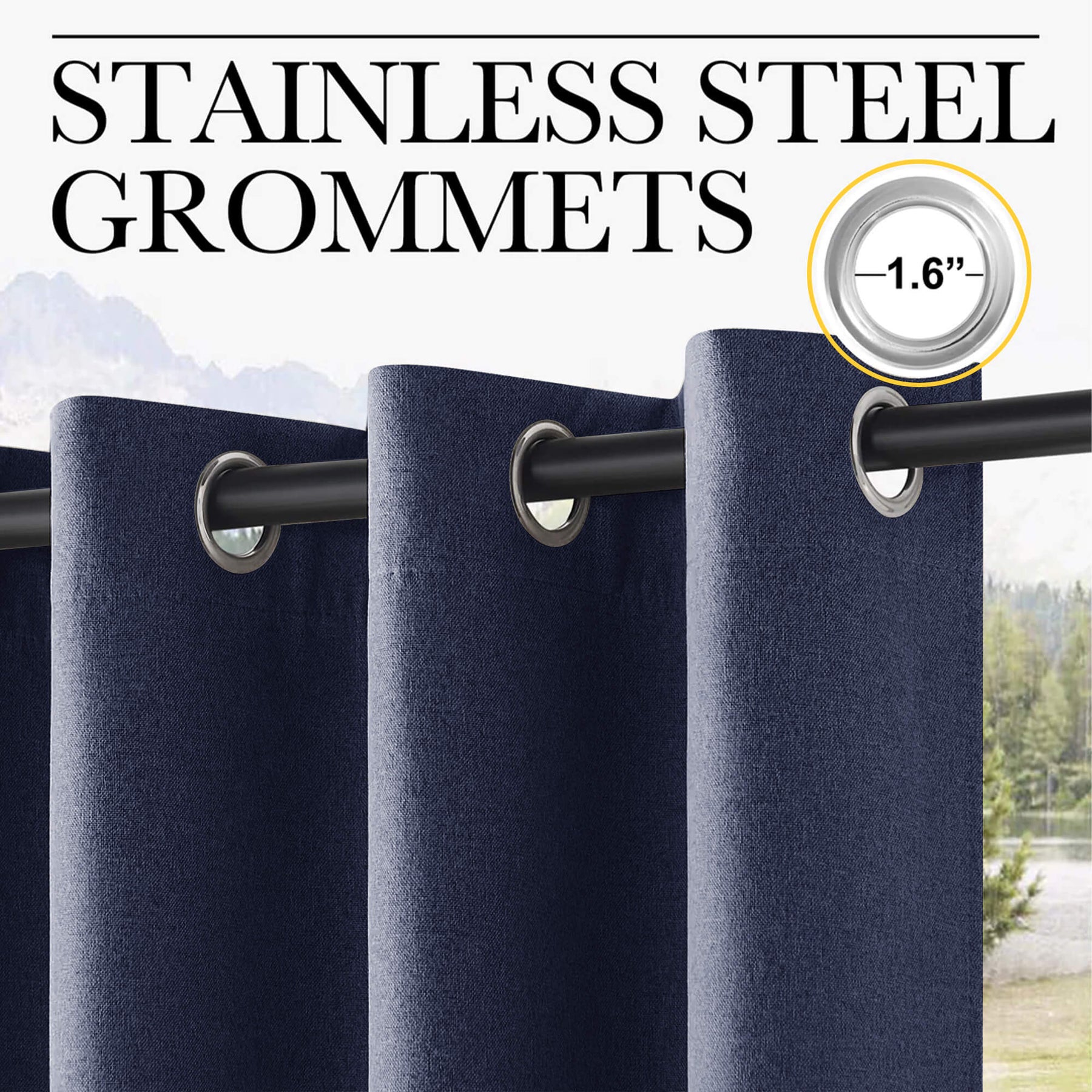 Grommets make the curtain weighted and fixed enough to avoid blowing and flapping, so that provides you with much privacy as well as protects you from sun and rain.