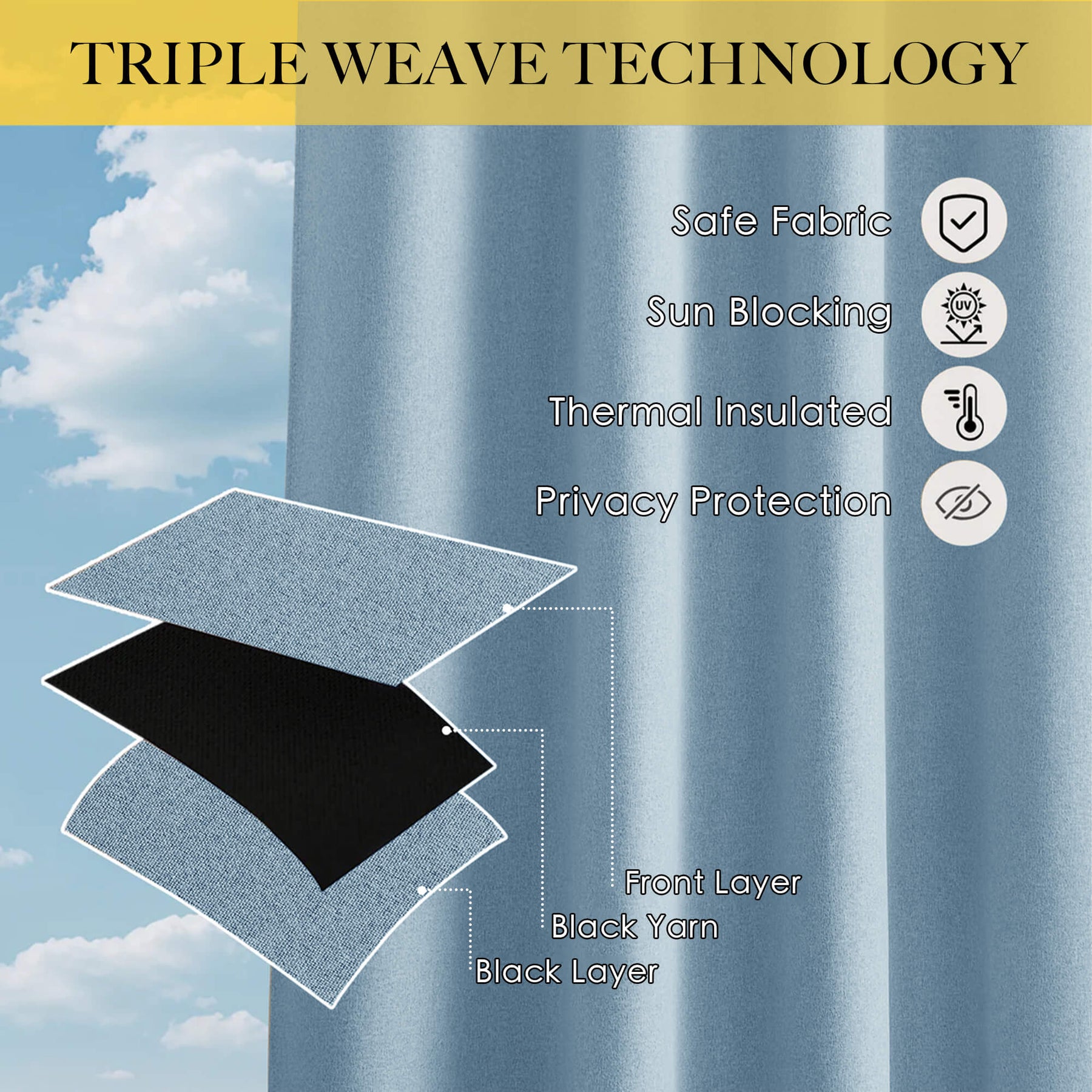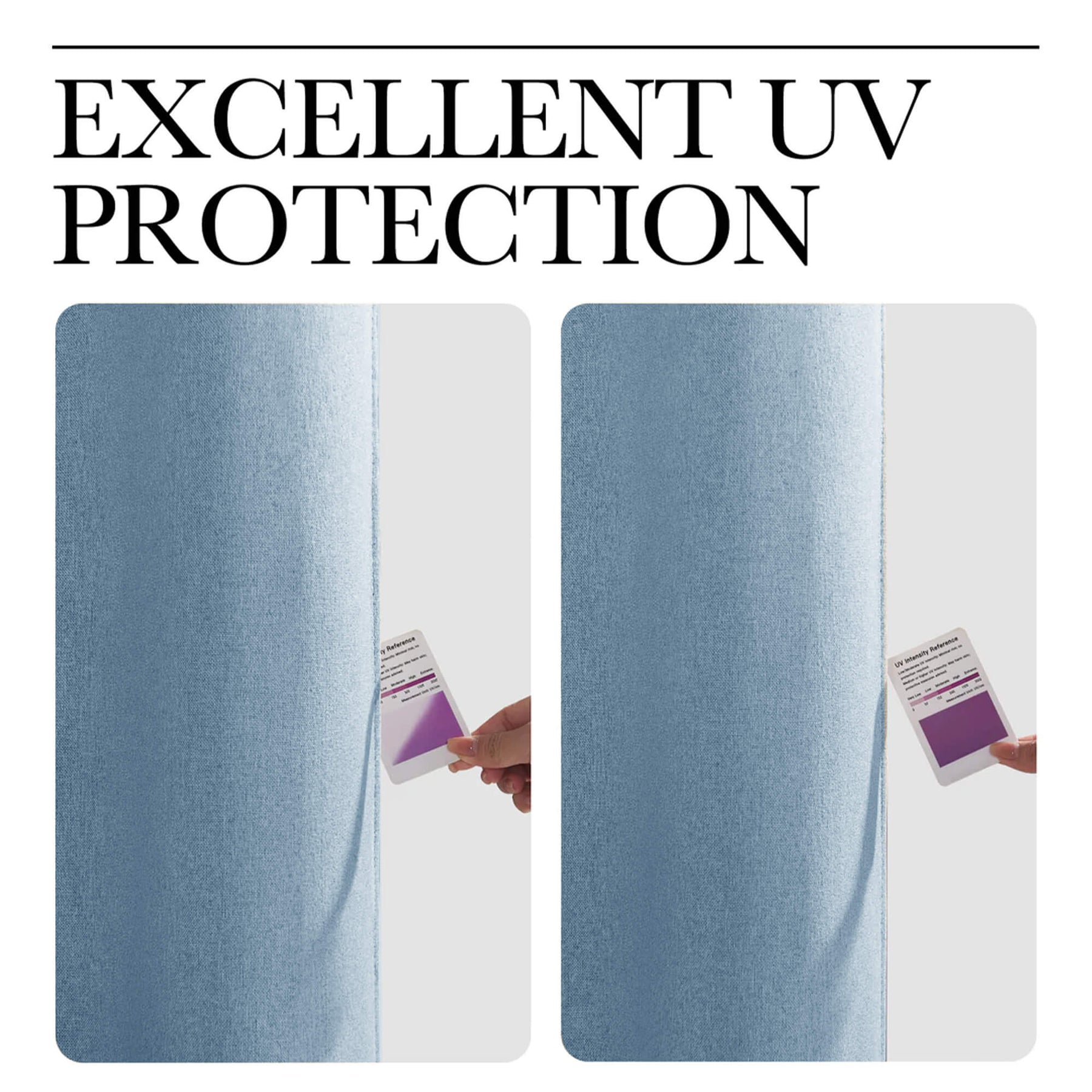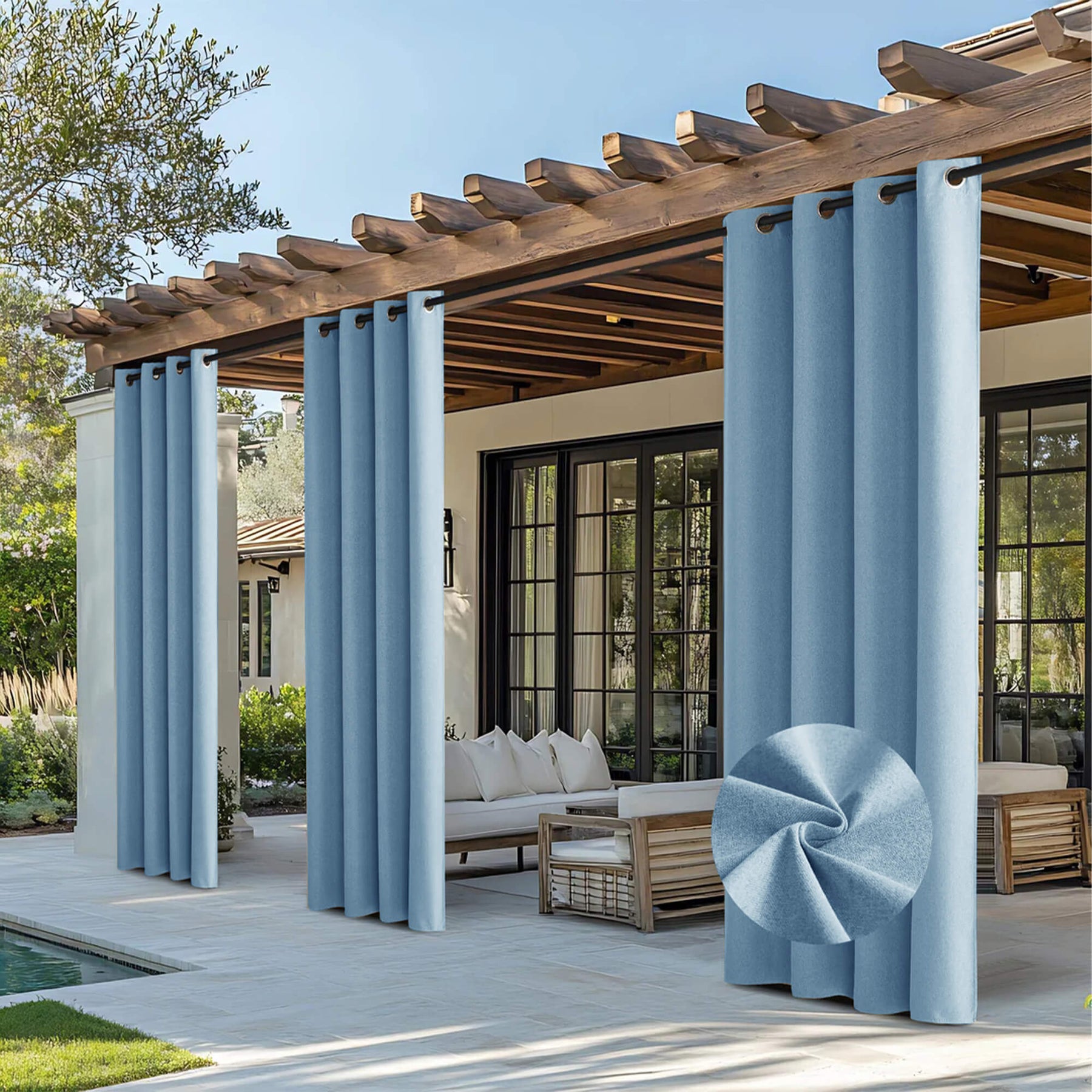 Outdoor 100% Blackout Waterproof Double-Sided High-Quality Combed Cotton Curtains, Sky Blue