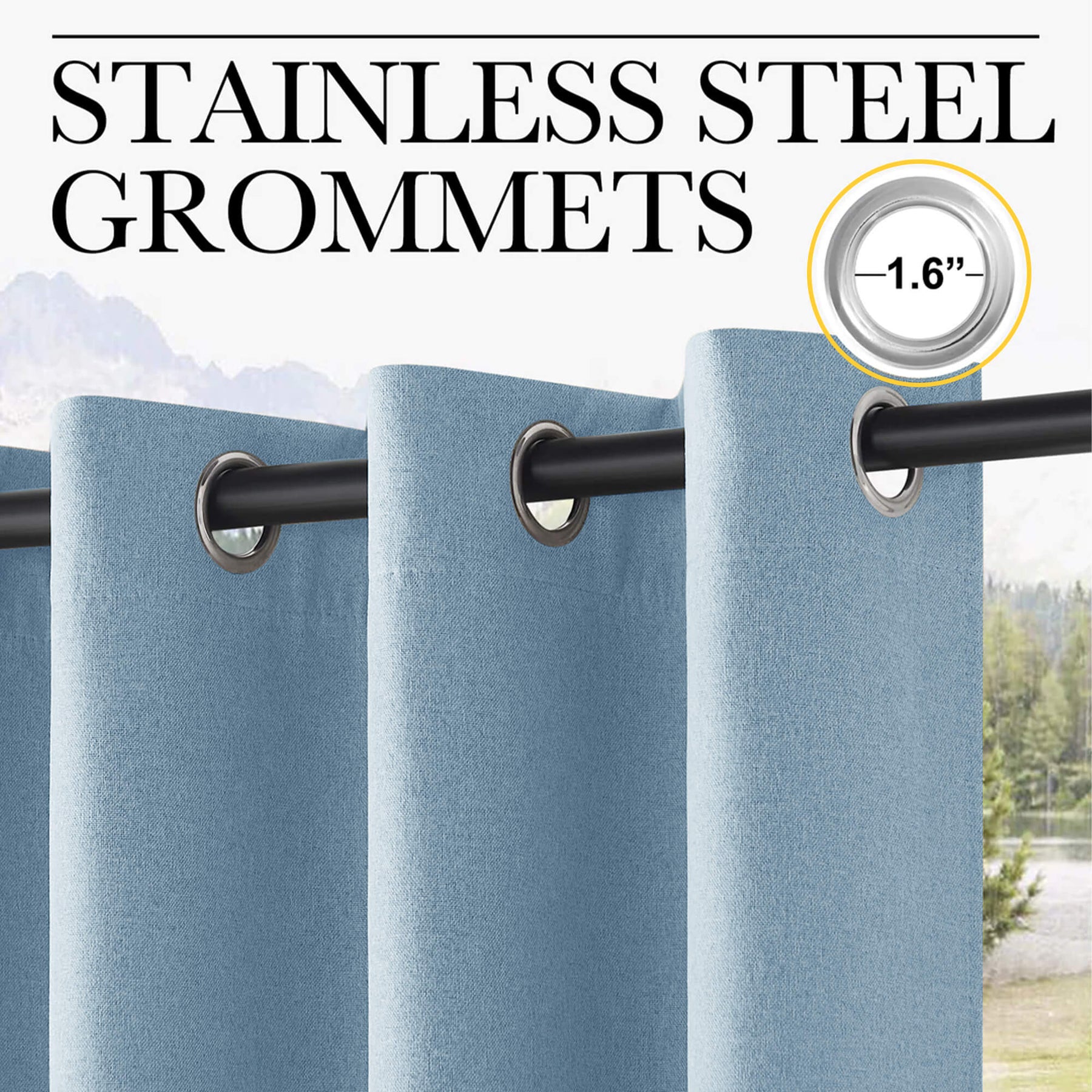 Grommets make the curtain weighted and fixed enough to avoid blowing and flapping, so that provides you with much privacy as well as protects you from sun and rain.