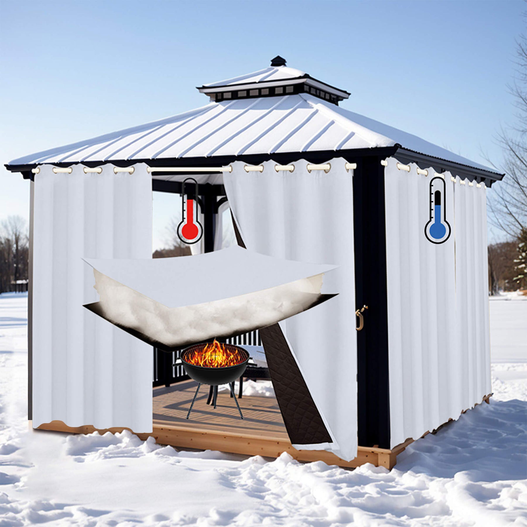 NICE THERMAL MATERIAL: Snowcity winter outdoor curtains add thick thermal cotton material in the center to keep stormy weather off your porch, snowflakes will quickly roll off when they come in contact with the curtains, blocking cold temperatures from outside your patio.