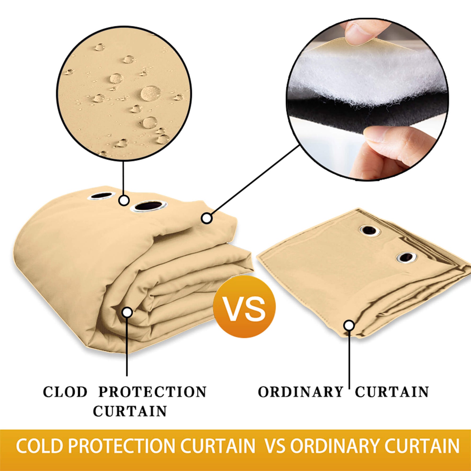WIND-PROOF: This winter outdoor curtains specially designed for winter outdoor patio is made of thicker wind-proof fabric, plus the weight of the middle thermal layer, which prevents the curtains from being blown and slapped by the seal.