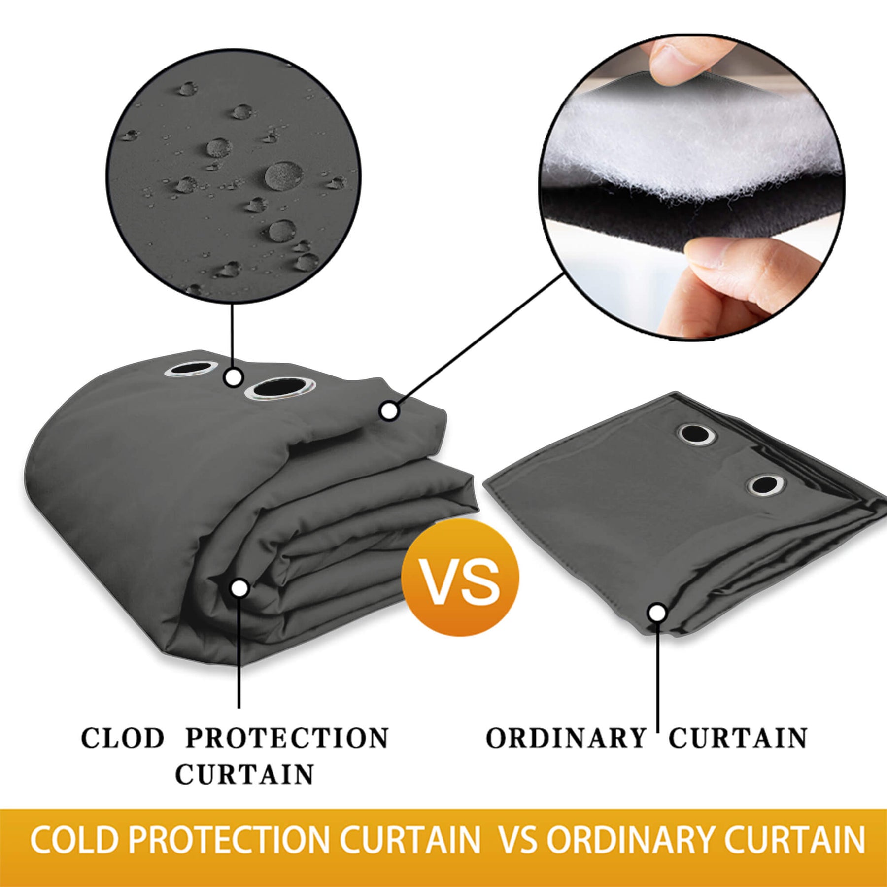 WIND-PROOF: This winter outdoor curtains specially designed for winter outdoor patio is made of thicker wind-proof fabric, plus the weight of the middle thermal layer, which prevents the curtains from being blown and slapped by the seal.