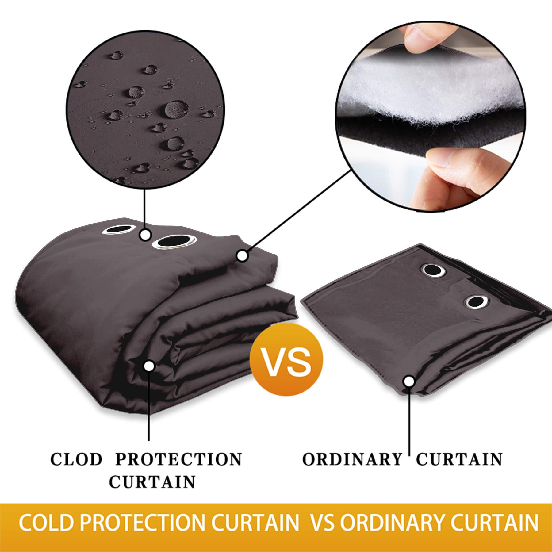 WIND-PROOF: This winter outdoor curtains specially designed for winter outdoor patio is made of thicker wind-proof fabric, plus the weight of the middle thermal layer, which prevents the curtains from being blown and slapped by the seal.