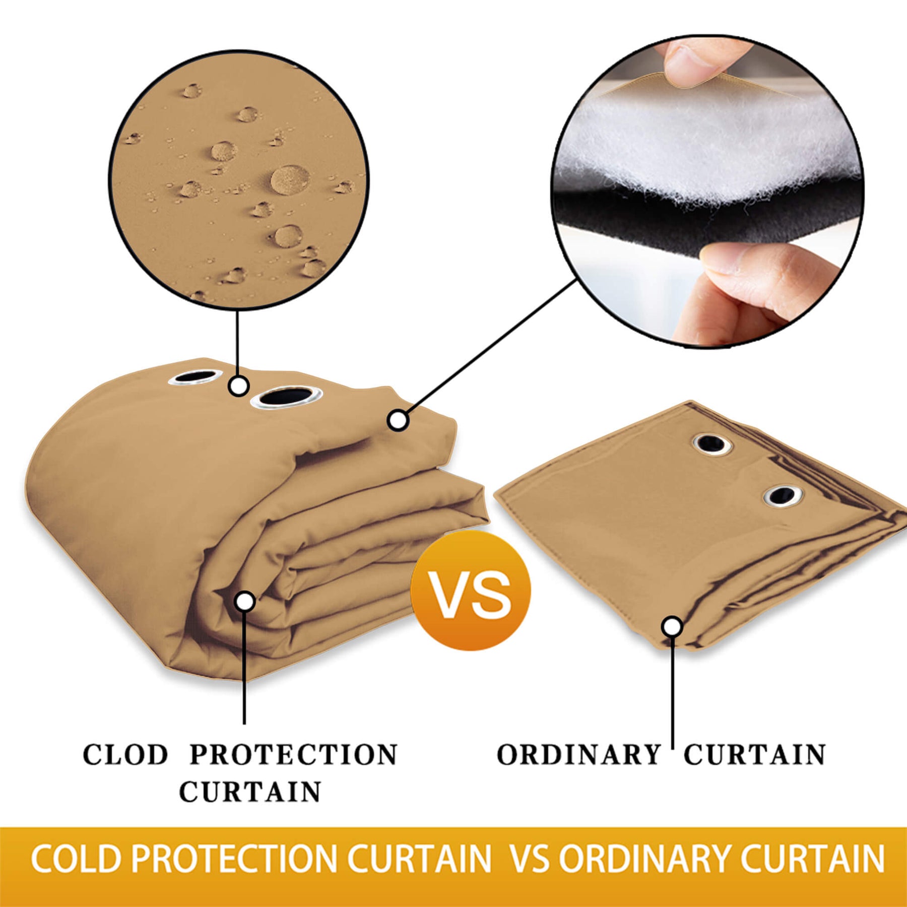 WIND-PROOF: This winter outdoor curtains specially designed for winter outdoor patio is made of thicker wind-proof fabric, plus the weight of the middle thermal layer, which prevents the curtains from being blown and slapped by the seal.