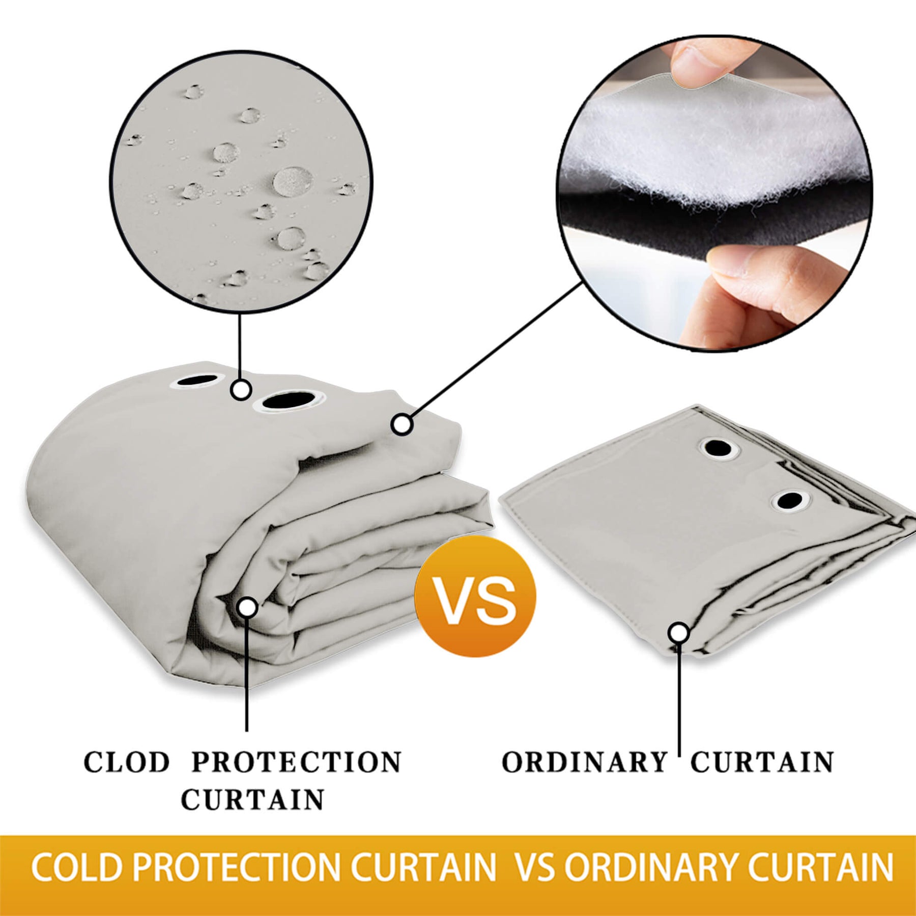 WIND-PROOF: This winter outdoor curtains specially designed for winter outdoor patio is made of thicker wind-proof fabric, plus the weight of the middle thermal layer, which prevents the curtains from being blown and slapped by the seal.