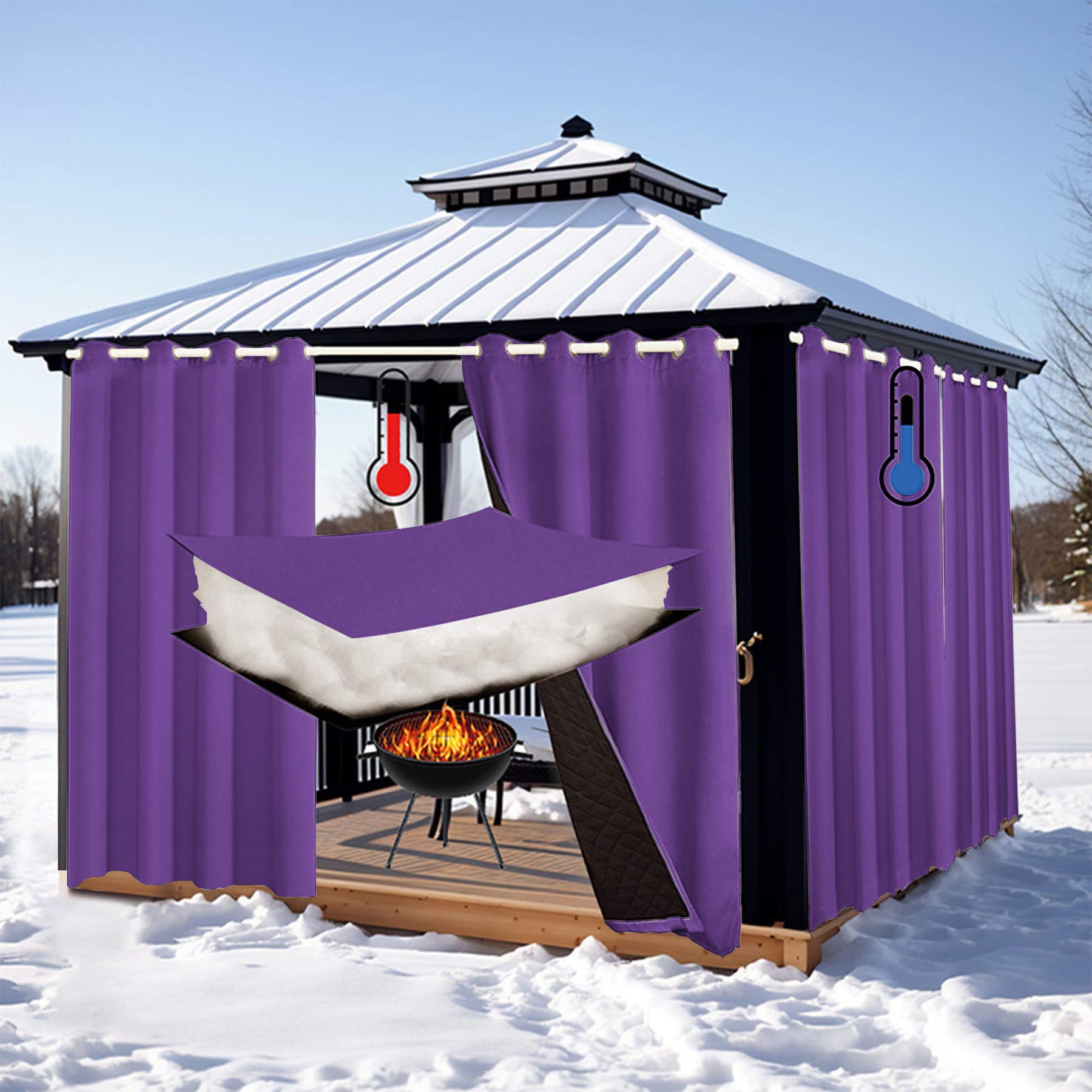 Insulated Outdoor Curtains for Winter - Purple
